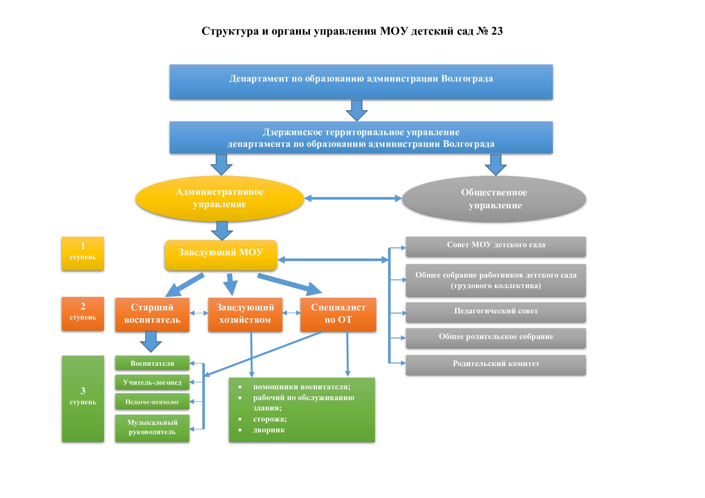 Непосредственное управление Учреждением осуществляет прошедший соответствующую аттестацию заведующий учреждением, назначаемый на должность и освобождаемый от должности начальником Дзержинского ТУ ДОАВ по согласованию с руководителем департамента по образованию администрации Волгограда.